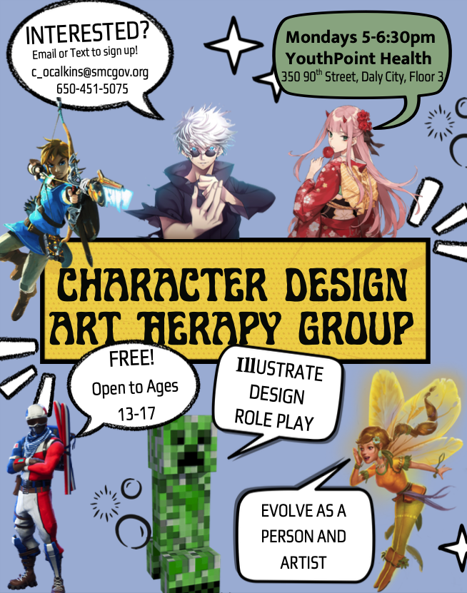 Character Art Therapy: For more information, please email c_ocalkins@smcgov.org.